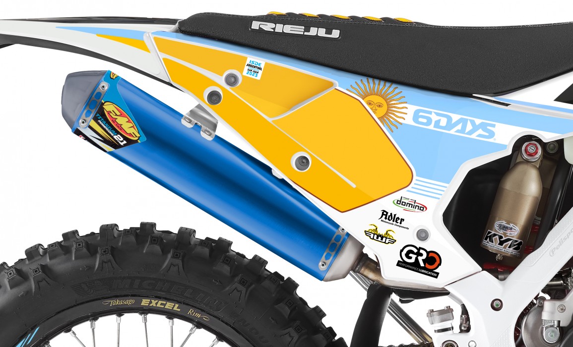 Συνεχίζοντας την παράδοση των τελευταίων ετών, η Rieju εξέπληξε για άλλη μια φορά όλους τους λάτρεις του Enduro και τους οπαδούς του κορυφαίου ανταγωνισμού εκτός δρόμου με το λανσάρισμα του νέου Rieju MR Six Days Argentina, μια περιορισμένη έκδοση, βασισμένη στο MR Pro 2024, η οποία διαφέρει από την βασικό μοντέλο λόγω κυρίως των ιδιαίτερων στοιχείων, καθιστώντας το αποκλειστικό μοντέλο. Το Rieju MR Six Days Argentina εκτός από τα χρώματα των πλαστικών του, μια ανανεωμένη και ελκυστική αισθητική που αποτίει φόρο τιμής στη σημαία της Αργεντινής, τη χώρα όπου θα διεξαχθεί το επόμενο FIM International 6 Days 2024.